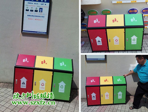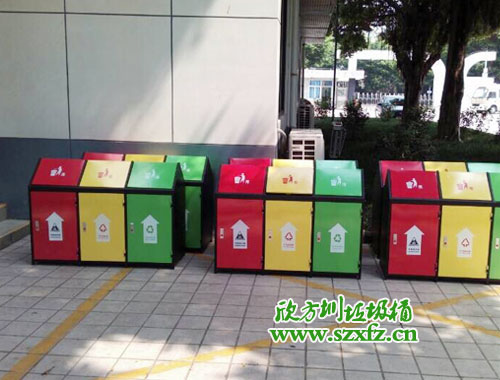 深圳市公安分局這款F98鋼板三分類垃圾桶的規格為:1220*430*890mm,鋼制垃圾桶呈屋形,三分類有三種顏色。從左到右順序依次排列,分別紅色,紅色,綠色三種顏色組成。屋形投遞口,絲印投遞人物標志,輕輕一推即可,把垃圾廢物放進去。正面絲印有三種標志,有毒廢棄物,不可回收,可回收三類。鋼制垃圾桶一種存放垃圾的容器,使用冷軋鋼板或者鍍鋅鋼板制作而成。因為產品表面經過噴塑和酸處理,防腐蝕性能更高。采用酸處理+噴塑處理,更利于防銹,增加使用壽命。這是鋼制垃圾桶所具有的強大的優勢。