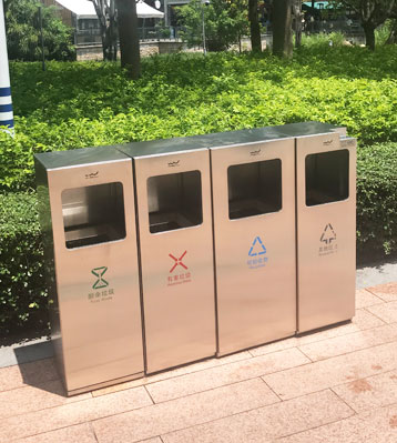 欣方圳不銹鋼滑軌推拉抽屜式分類垃圾箱戶外擺放圖