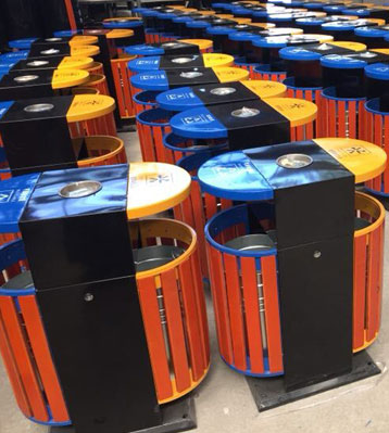 欣方圳戶(hù)外橢圓鋼木分類(lèi)垃圾桶原材料