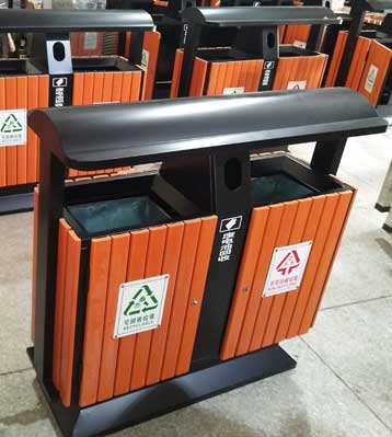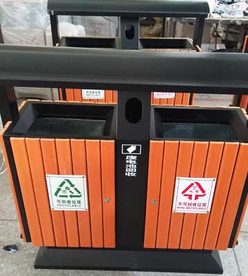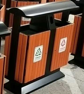戶外馬路鋼木分類垃圾桶桶頂圖