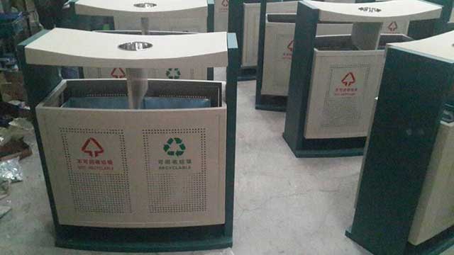F139戶外鋼板四分類垃圾桶